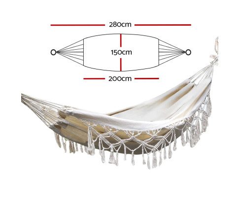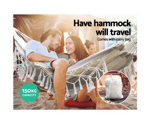 If you enjoy spending your leisure time on the patio, in the garden, or indoors, you’ll absolutely love our Gardeon Hanging Tassel Hammock. Crafted from a high-quality blend of polyester and cotton fabric, our tassel hammock can support a maximum weight of 150kg.