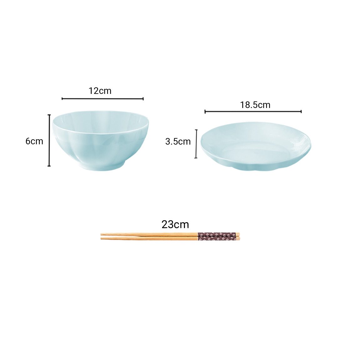 - 1X SOGA 10 PCs Light Blue Ceramic Dinnerware Set (6 Bowls, 4 Plates, 6 Pairs of Chopsticks)