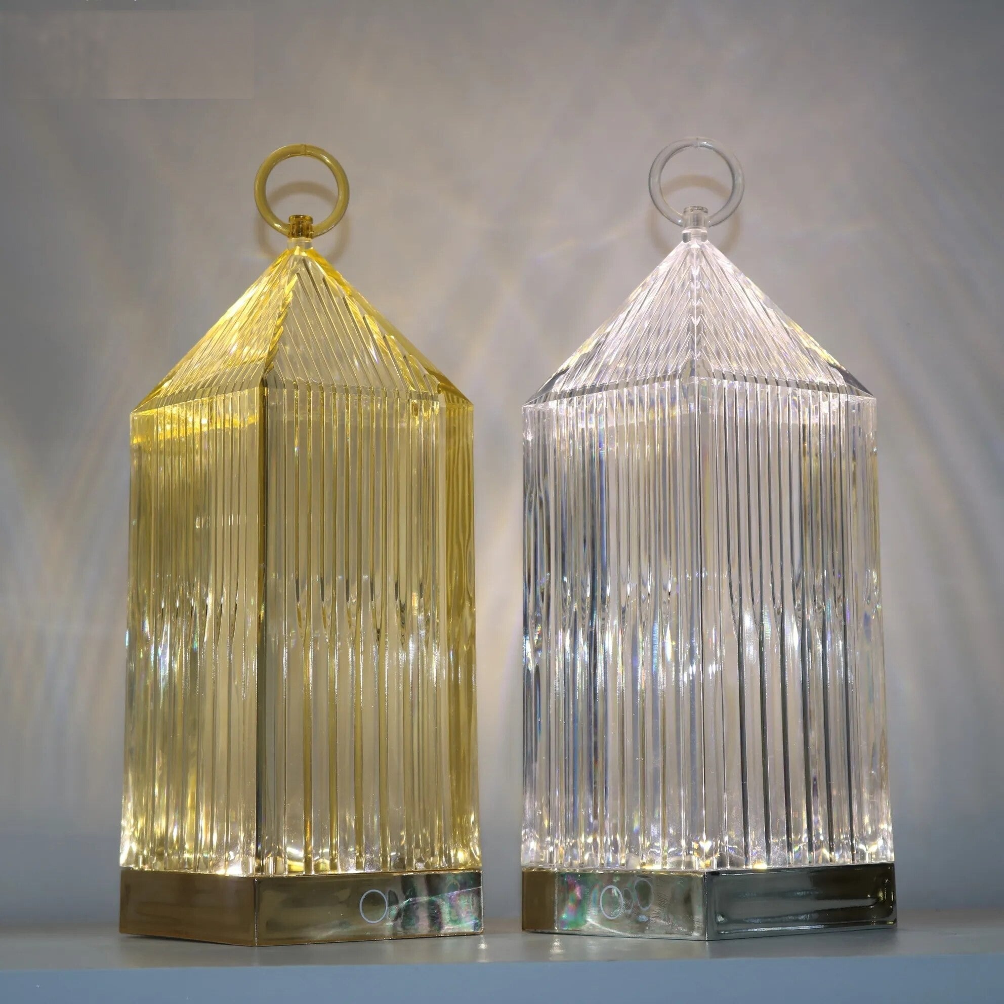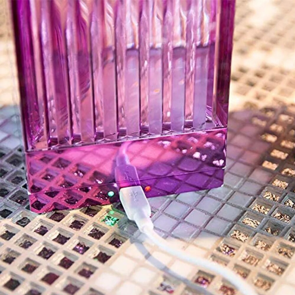 Luxury Table Lamp Acrylic Crystal Purple Lantern, USB Charging