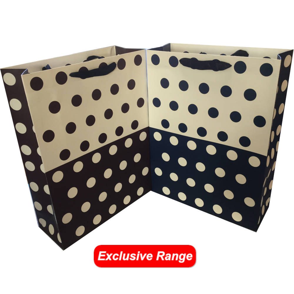 Discover Polka Dot Gift Bags for her and him in large size. While our goodie bags are exclusive, they are authentic, affordable and classy catering for all your gifts and gift ideas. Made of sturdy paper, these gift bags come in 3 to 4 assorted colours, they are versatile and makes a statement. Our printed paper gift bags, suit many occasions and events, whether small or big. Offering them now at sensible prices for a limited time, good luck.