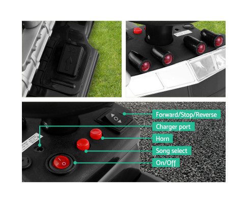 Additional features such as the forward/stop/reverse switch, charger port, horn, song selection, and on/off button make for a realistic and immersive driving experience. Moreover, the gradual acceleration and deceleration mechanism prevents sudden jerks or stops, ensuring a smooth ride. And for your peace of mind, our ride-on truck is backed by the EN71 Standard Safety of Toys certification, assuring the utmost safety for your child.