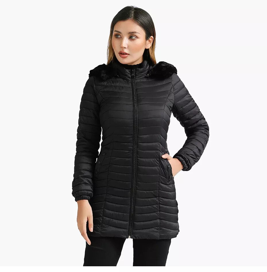 With its plush padding and luxurious faux fur lining, you’ll feel like you’re wrapped in a cloud of cosiness wherever you go. Whether you’re strolling through snowy streets or attending a glamorous soirée, this long padded coat effortlessly combines functionality and fashion. Don’t let the cold weather dampen your spirits – embrace the winter wonderland in style with our Long Padded Coat.